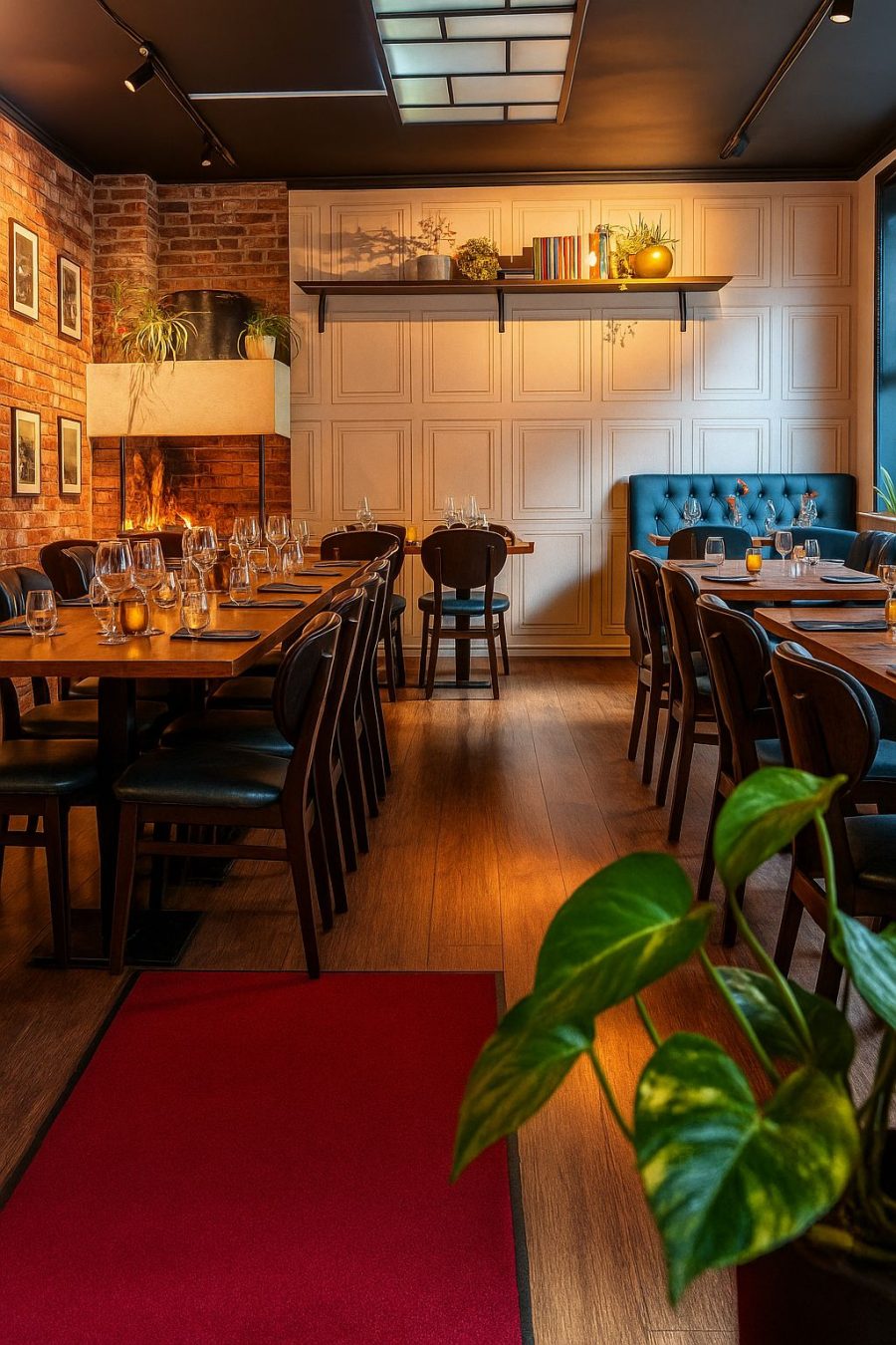 Romslig og livlig, perfekt for store bedriftssamlinger, nettverksmiddager eller bedriftsomfattende arrangementer. Et romslig og elegant rom designet for store bedriftssamlinger. Perfekt for firmafester, nettverksmiddager eller forretningspresentasjoner. Med varm belysning og en sofistikert oppsett sikrer dette rommet en profesjonell, men likevel innbydende atmosfære.